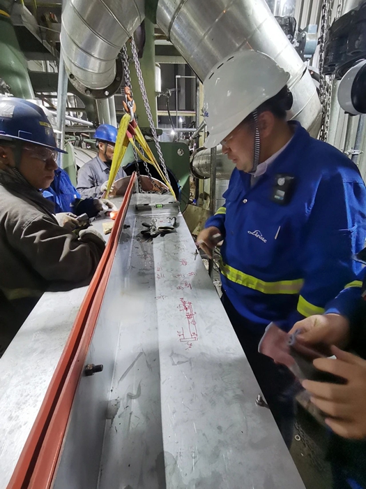 為保證檢修順利推進(jìn),負(fù)責(zé)控制系統(tǒng)升級(jí)的責(zé)任人左進(jìn)春提前1年就開始準(zhǔn)備備件。在檢修期間,他的愛人正趕上生產(chǎn)分娩,左進(jìn)春在愛人分娩后第二天就從張家口家中返回工廠,投入檢修工作中。