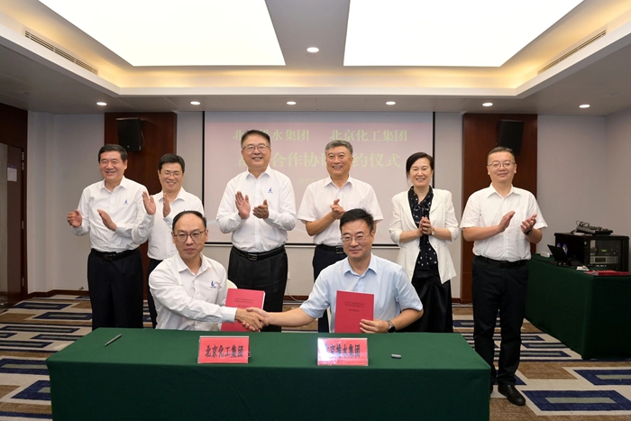 7月15日,北京化工集團(tuán)與北京排水集團(tuán)簽署戰(zhàn)略合作協(xié)議。化工集團(tuán)黨委書記、董事長陳宇,黨委副書記、董事、總經(jīng)理楊旭輝,黨委常委、副總經(jīng)理孫紹剛,副總經(jīng)理張榮寰;排水集團(tuán)黨委書記、董事長張建新,黨委副書記、職工董事、工會主席王蘭,黨委委員、副總經(jīng)理張志淵出席簽約儀式。