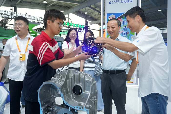 致力于職業(yè)技能人才培養(yǎng)的技師學(xué)院,在互動中呈現(xiàn)世界技能大賽金牌項目——機電一體化的卓越成果,學(xué)院以人機互聯(lián)的3D掃描和工業(yè)機器人吸引了大批參觀者駐足,讓觀眾近距離感受產(chǎn)教融合的創(chuàng)新實踐和“化工+教育”的協(xié)同價值。